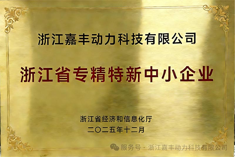 bubar,Zhejiang Jiafeng Power Technology Co., Ltd.(sabanjuré diarani "Jiafeng Power") nampa kabar sing nyenengake. Thanks kanggo kinerja pinunjul ing spesialisasi profesional lan inovasi teknologi, perusahaan kasil lulus review lan dianugerahi judhul "Specialized, Refined, lan Inovatif" Enterprise Cilik lan Sedheng ing Provinsi Zhejiang.